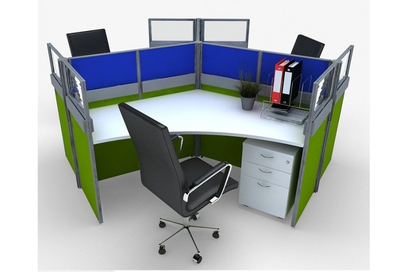 Thickness : 45mm Partition Height : 1200mm Frame : Silver 2-Seaters L-Shape Desk Equipped with 45mm Thickness Combionation with Solid & Half Poly Partitions. This Workstation Enables 2 Individuals Of A Team To Get Connected Efficiently.