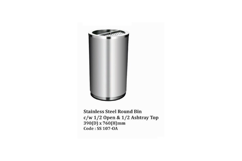 Stainless Steel Round Bin c/w 1/2 Open & 1/2 Ashtray Top Size: 380D x 760Hmm