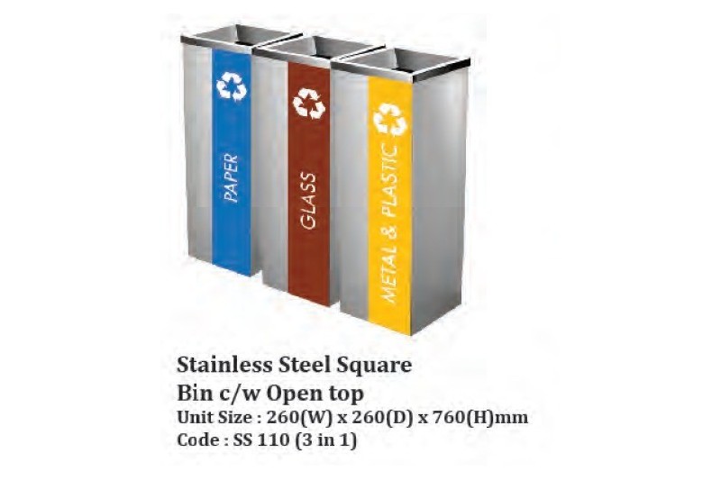 Stainless Steel Recycle Rectangular Bin c/w Flip Top (3 In 1) Size: 380W x 230D x 750Hmm Code: SS102CE3