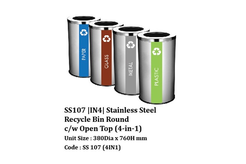 Stainless Steel Semi Round Bin c/w Open Top Size: 457W x 227D x 760Hmm Code: SS103(4IN1)
