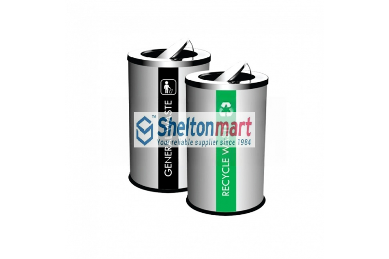 Stainless Steel Recycle Bin Round c/w Flip Top (2 In 1)
