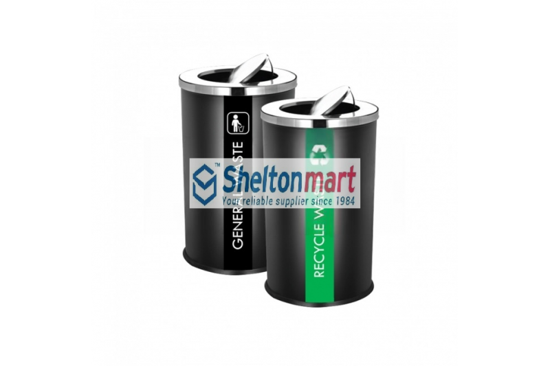 Black Powder Coated Stainless Steel Recycle Bin Round c/w Flip Top (2 In 1)