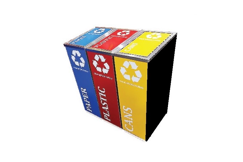 Black Powder Coated Stainless Steel Recycle Rectangular Bin c/w Flip Top (3 In 1)