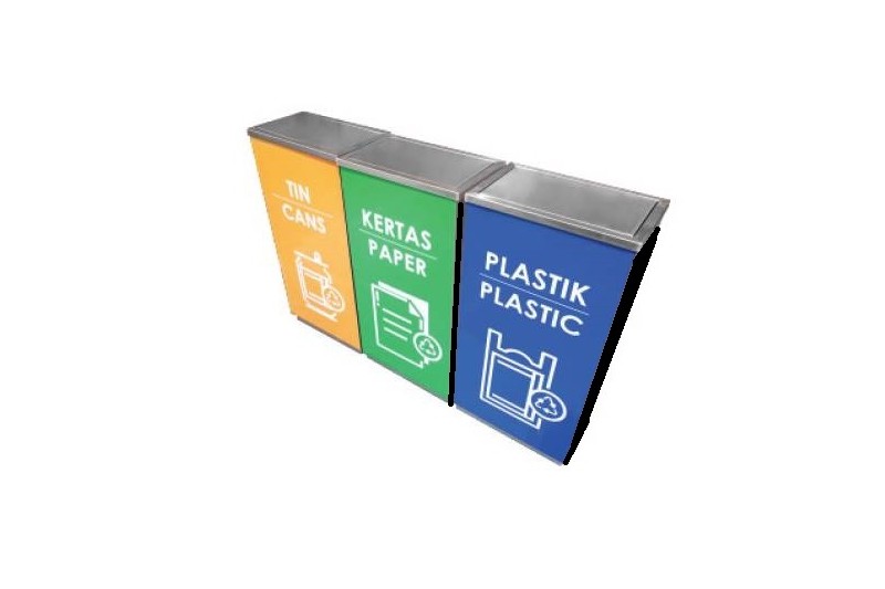 Stainless Steel Recycle Rectangular Bin c/w Flip Top (3 In 1) Size: 380W x 230D x 750Hmm Code: SS102CE3