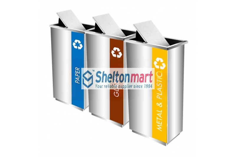 Stainless Steel Recycle Rectangular Bin c/w Flip Top (3 In 1) Size: 380W x 230D x 750Hmm Code: SS102CE3