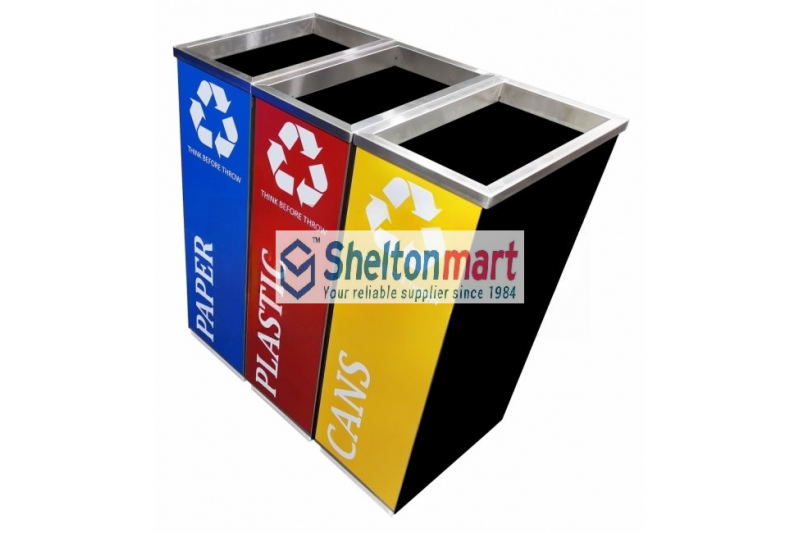 Stainless Steel Recycle Rectangular Bin c/w Flip Top (3 In 1) Size: 380W x 230D x 750Hmm Code: SS102CE3
