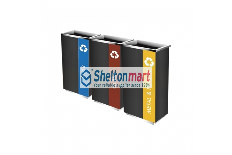 Black Powder Coated Stainless Steel Recycle Rectangular Bin c/w Open Top (3 In 1)