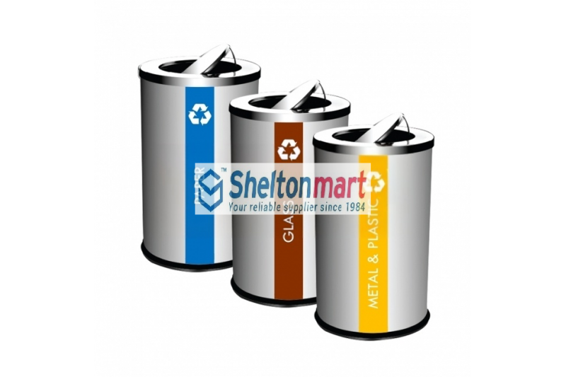 Stainless Steel Recycle Bin Round c/w Flip Top (3 In 1)