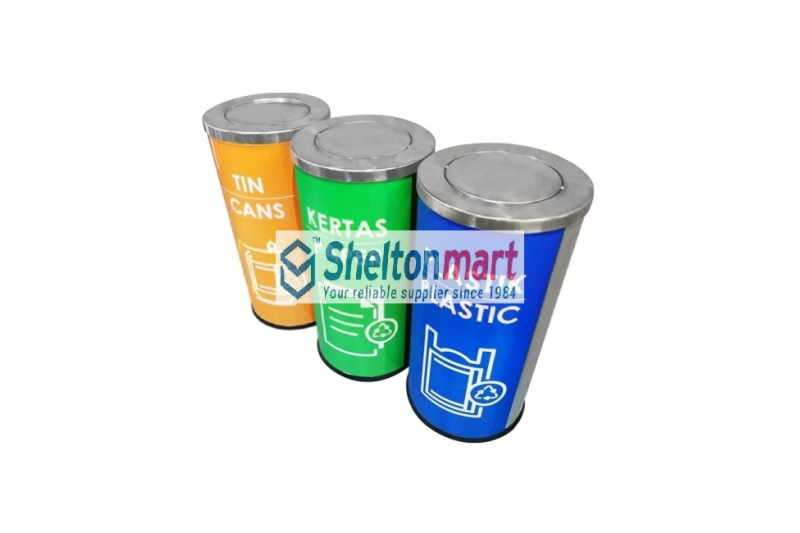 Stainless Steel Recycle Bin Round c/w Flip Top (3 In 1)