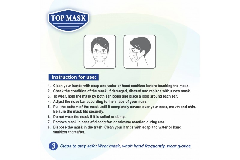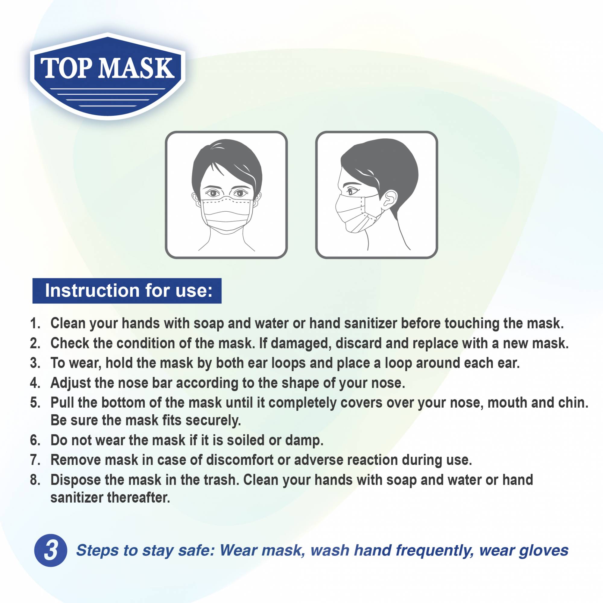 TOP MASK can be used for medical applications, suitable to filter germs, bacteria as well as dust and air particles.
